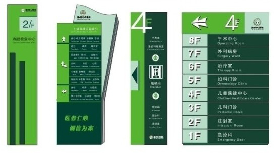 就診是否方便快捷、人流物流是否合理,都決定著醫(yī)院環(huán)境的質(zhì)量,影響著群眾對醫(yī)院的整體印象,而設(shè)置一套科學(xué)明晰的醫(yī)院標識導(dǎo)向系統(tǒng),是醫(yī)院形象系統(tǒng)與內(nèi)部使用功能的組成部分,是醫(yī)院環(huán)境建設(shè)的重要內(nèi)容。