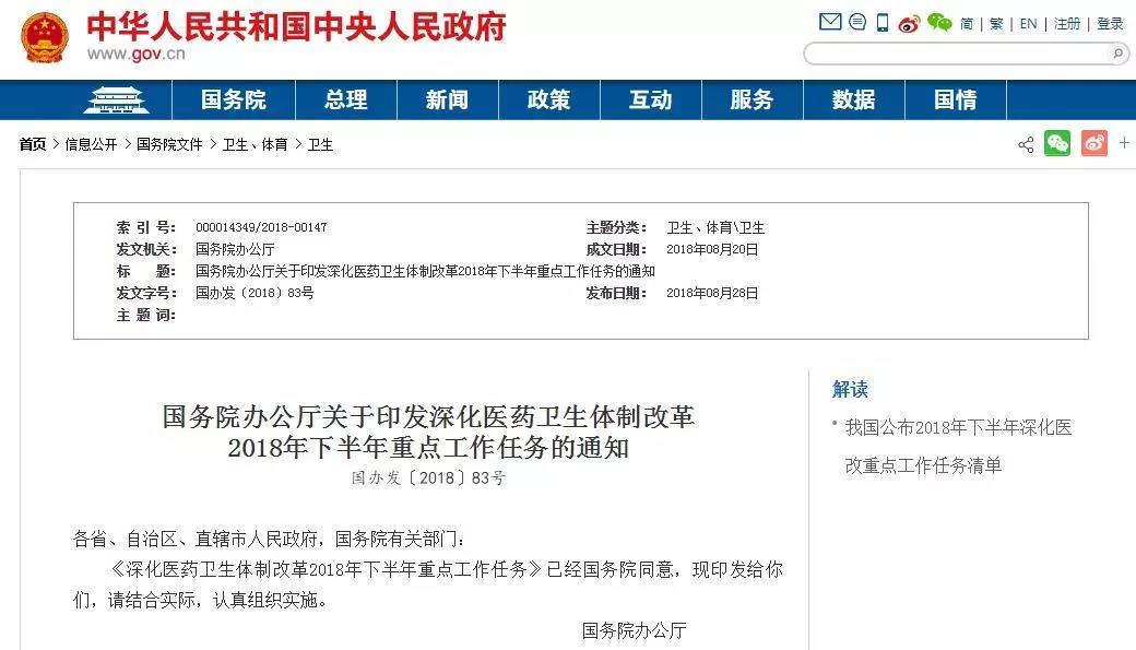 近日,國務院辦公廳印發(fā)《深化醫(yī)藥衛(wèi)生體制改革2018年下半年重點工作任務》,以人民健康為中心,推動醫(yī)改向縱深發(fā)展。