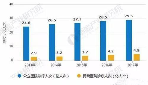 2013-2017年中國(guó)醫(yī)院診療人次數(shù)量統(tǒng)計(jì)情況