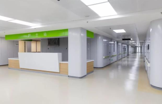 這一區(qū)域以綠色為主色調(diào),該色彩來自于香樟葉,彰顯了生命的活力,也可以使人平穩(wěn)情緒、放松心情,減輕患者的心臟負(fù)擔(dān)。此外,護(hù)士站采用人性化設(shè)計,患者在坐輪椅的情況下,也能對話護(hù)理人員。