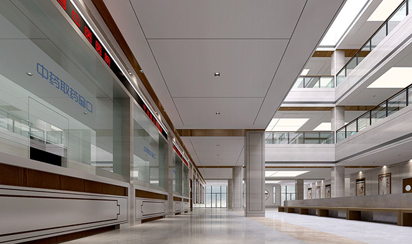 盡量將室內(nèi)設(shè)計(jì)與戶外自然產(chǎn)生緊密聯(lián)系,減少封閉空間的使用,特別是掛號(hào)收費(fèi)區(qū)及取藥等候區(qū),中藥劑取的時(shí)間較長(zhǎng),應(yīng)營(yíng)造溫馨舒適的氛圍,以減弱等候人群心理的焦慮感。