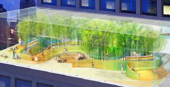比如,芝加哥一兒童醫(yī)院空中花園就是自然化設(shè)計(jì)表達(dá)的典型案例?;▓@位于11層,由玻璃溫室覆蓋,患者可以感受室外季節(jié)與氣候的變化,從而感到輕松自然又愜意?;▓@依據(jù)患者行為路徑與心理活動(dòng),布置了竹子、天然石,水體等自然元素,為患者提供一個(gè)減壓與冥想的空間。彩色樹(shù)脂墻體上設(shè)置了LED板和運(yùn)動(dòng)感應(yīng)器,當(dāng)患者走過(guò)時(shí)會(huì)變幻動(dòng)態(tài)的色彩組合,仿佛墻面被賦予了生命,具有動(dòng)感和趣味。