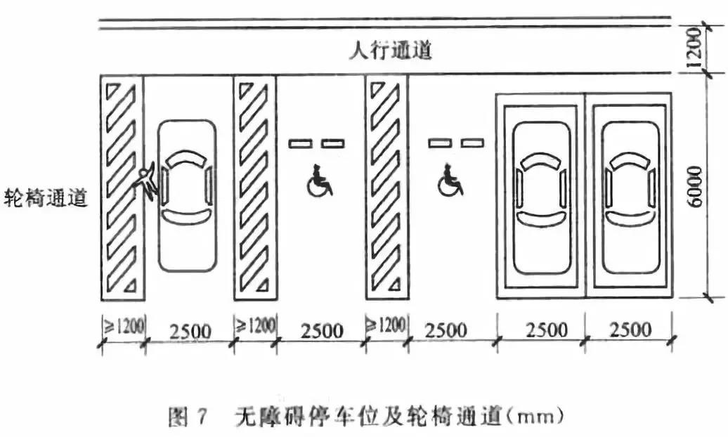3、停車車位的輪椅通道與人行通道的地面有高度差時(shí),應(yīng)設(shè)符合輪椅通行的坡道。