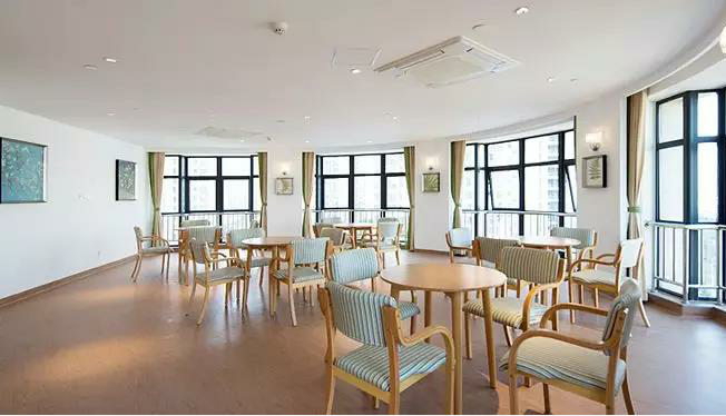 這個(gè)功能空間中應(yīng)該設(shè)計(jì)在建筑外圍,既保證有舒適的采光,又需要外圍配合有景觀樹(shù)蔭遮擋,不至于光線過(guò)于強(qiáng)烈刺眼,可以讓老人們長(zhǎng)時(shí)間在這里休憩停留。