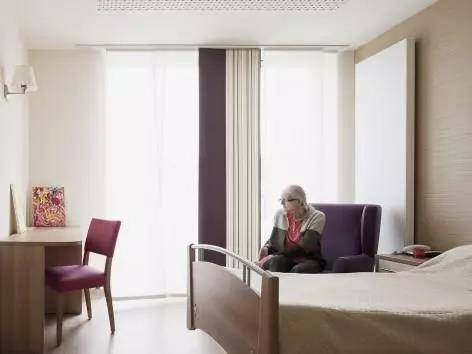 養(yǎng)老建筑中老人主要分為健康老人、半失能老人以及失能老人三類,病房和休養(yǎng)區(qū)是他們活動(dòng)最多、逗留時(shí)間最長(zhǎng)的區(qū)域。在這個(gè)區(qū)域當(dāng)中要求有高質(zhì)量的景觀、良好的通風(fēng)以及充沛的日照光線,為保障這些基本條件,首先開(kāi)窗口的位置、大小、比例以及尺寸十分重要,窗地比例控制在1:6左右,這是為了能夠更好地將室外環(huán)境引入室內(nèi),讓老人能夠足不出戶就能感受到冬暖夏涼,以此彌補(bǔ)老年人由于身體機(jī)能日漸衰退而減少戶外活動(dòng)的缺憾。陽(yáng)臺(tái)的設(shè)計(jì)對(duì)于病房和休養(yǎng)區(qū)十分重要,陽(yáng)臺(tái)一般設(shè)置于偏南向,不但可用于晾曬衣物,觀景休閑,還可在寒冷的冬季成為十分重要的活動(dòng)區(qū)域。從另一方面而言,陽(yáng)臺(tái)也起到反射遮陽(yáng)、控制自然光的作用,使自然光更加柔和地引入室內(nèi),不對(duì)老年人的視覺(jué)造成額外負(fù)擔(dān),創(chuàng)作出更加適合老年人生活的光環(huán)境。