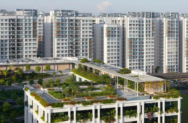 屋頂遍植花木并設有都市農(nóng)業(yè)種植床?;▓@不僅在社區(qū)中作為審美角色,還是集體園藝項目。通過聚集居民一起參與種植、養(yǎng)護以及收獲,花園能夠增進社區(qū)關系。