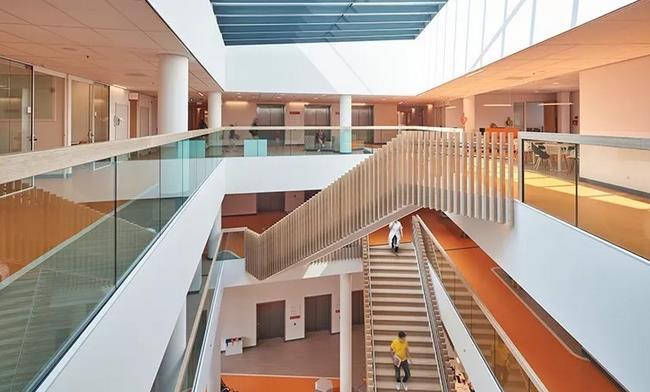 1-3層的步行梯是精心設(shè)計(jì)的,陽光能透過玻璃吊頂灑落下來,給人溫暖。此外,患者、家屬及醫(yī)院員工還可以適當(dāng)運(yùn)動(dòng),以緩解身心疲勞,調(diào)動(dòng)積極情緒。