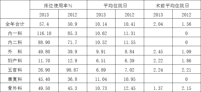 我院2013年床位未得到充分利用,出院病人平均住院日處于正常效率運(yùn)行狀態(tài),而床位使用率處于低效率運(yùn)行,說(shuō)明住院病人率低。