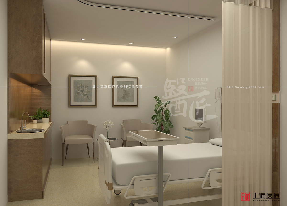 大廳、候診室、病房等室內(nèi)空間,都體現(xiàn)出簡約、實用,但又富有朝氣的特征,從醫(yī)療功能出發(fā),講究空間的舒適性,并強(qiáng)調(diào)整體環(huán)境的簡潔、干凈、大方、優(yōu)雅。
